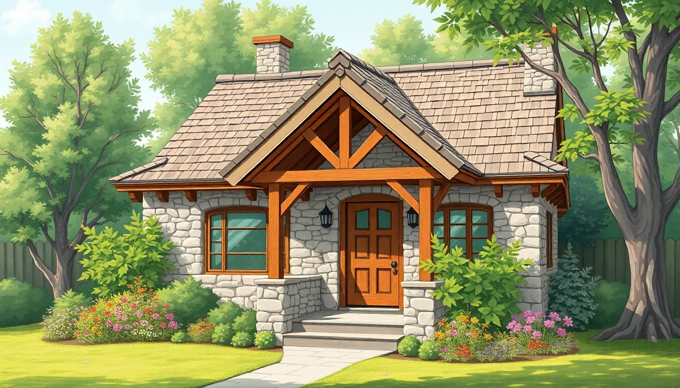 Gabled roofs stand out as a key architectural element, enhancing the cottage’s whimsical character. Inviting porches provide a welcoming transition from the outside world. Decorative woodwork, including exposed rafters and intricate detailing, adds to the visual interest. Traditional materials like stone and wood reinforce the rustic appeal, which resonates with nature. These features contribute to a cozy yet functional living environment, perfect for both relaxation and gatherings.